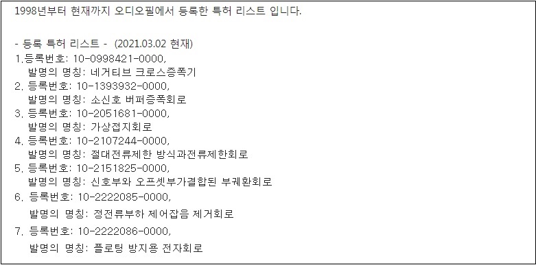 1998년부터 현재까지 오디오필에서 등록한 특허 리스트 입니다. (Rev.4) 본문