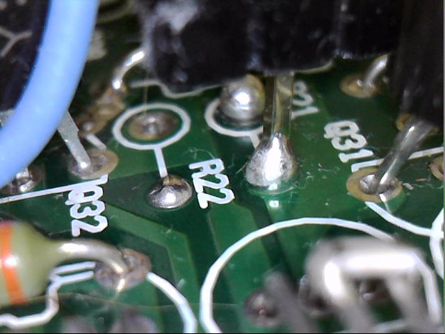 2-2-3. 왼쪽 R21 표시점에 Magic Triode OPM100-1P2W의 핀 2번을 납땜한 사진 입니다.