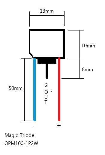 위 사진은 OPM100-3P2W 제품으로써 2.54mm 간격으로된 3핀 단자와 2개의 와이어로 되어 있습니다.