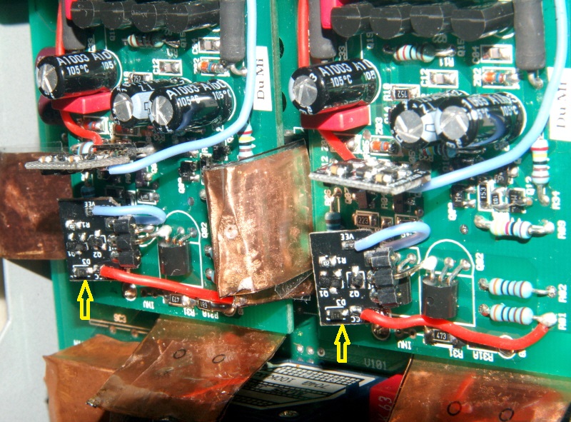 아래 사진에 앰프보드에서 트라이오드를 설치할 포인트를 표시했습니다.